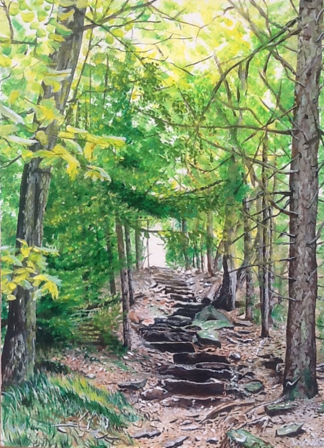 Interessanterweise ist das mein erstes Papierbild im Hochformat. Offensichtlich bieten sich Motive per se im Querformat an – zumindest die, die mich zum Malen reizen. Ich werde das in Zukunft bewußter verfolgen.