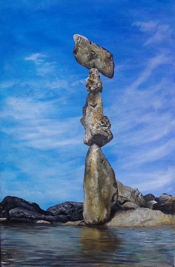 Ich liebe Steine. Ich suche nach Steinen, die mir gefallen, besonders geformten Exemplaren mit Charakter. Kreide, Buntsandstein, Schiefer, Gneis, Kalkstein, Feuerstein, oft vom Meer über lange Zeit geformt. Ich suche, was zusammenpasst, und checke Form und Gewicht, finde mögliche Kontaktpunkte, erst mit dem Auge und dann mit Gefühl. Das Aufeinanderstellen klappt oft nicht auf Anhieb und kann dauern.
