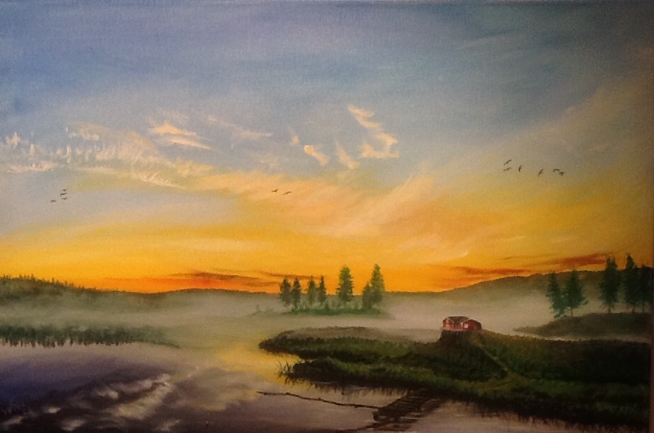 Acryl auf Leinwand, 60×40 cm, 100, Vorlage: Inspiriert von Hurtigruten.de.