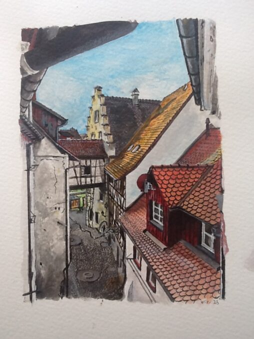 Seit Juli habe ich kein Bild mehr veröffentlicht. Das hat seinen Grund. Anfang Juli habe ich unseren Garten als Malort entdeckt. Ich habe dort ein großes Bild begonnen…