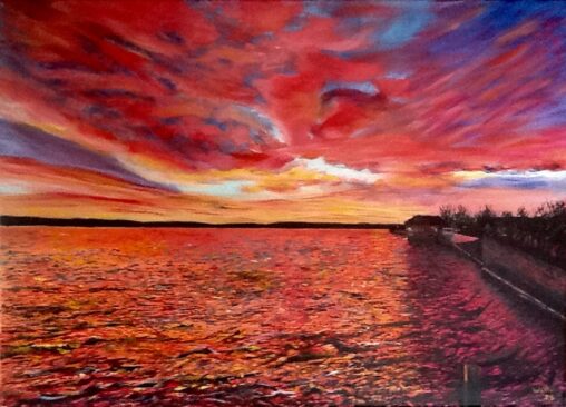 Wieder ein Abend – aus dem Internet. Ein besonders friedlicher. So gut wie keine Wasserkräuselung ist zu bemerken. Bei diesem Bild habe ich mit verschiedenen Techniken und Malutensilien…