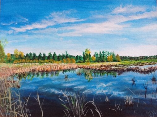 Die Variation eines bekannten Themas (Schwenninger Moos 1). Für die Variation sorgt allerdings nicht der Maler, sondern die Natur. Es gibt Blautöne, die reflektieren sich im Wasser kräftiger…