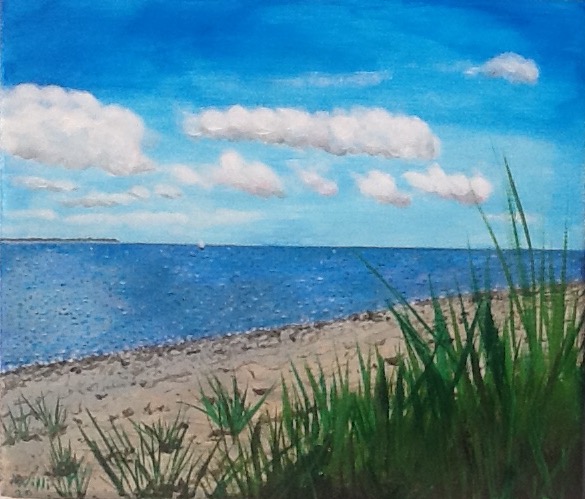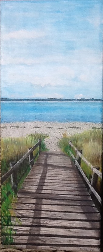 Dieses Bild ist eine Urlaubserinnerung – allerdings nicht meine. Wieder einmal die Ostsee. Das Wasser ist für mich einfach zu ruhig… Acryl auf Papier, 32×24 cm, Vorlage: Fotografie…