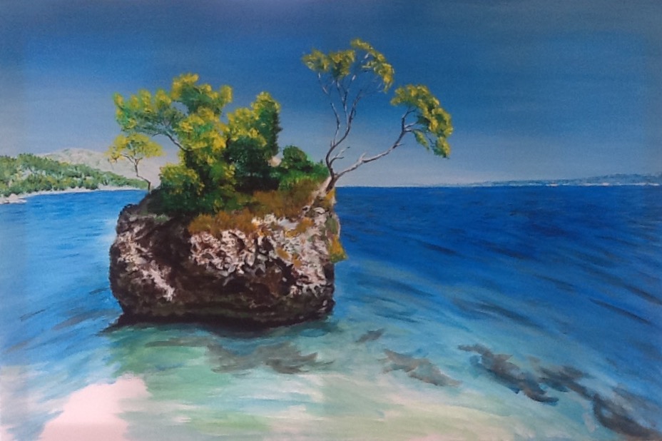 Die Vegetation ist angelegt. Es fehlen noch einige „Highlights“, also Lichtpunkte, die das Auge anziehen. Das Gras auf dem Stein ist auch noch nicht detailliert genug. Das sind aber Dinge, die zu den „letzten 100 Strichen“ gehören.