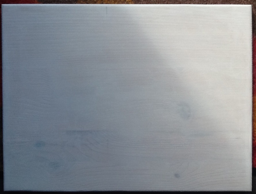 Anschließend muss die spätere Bildoberfläche behandelt werden. Acryl-Farben, die für das Bild verwendet werden sollen, sind keine Dispersionsfarben: sie sind und bleiben lichtdurchlässig. Anders Dispersionsfarben. Sie sollen am liebsten nach bereits nur einem einzigen Farbauftrag auch den dunkelsten Farbuntergrund deckend überstrahlen. Dispersionsfarben lassen sich zwar mischen, aber der Farbeindruck entsteht immer von der zuletzt gemalten Farbschicht.